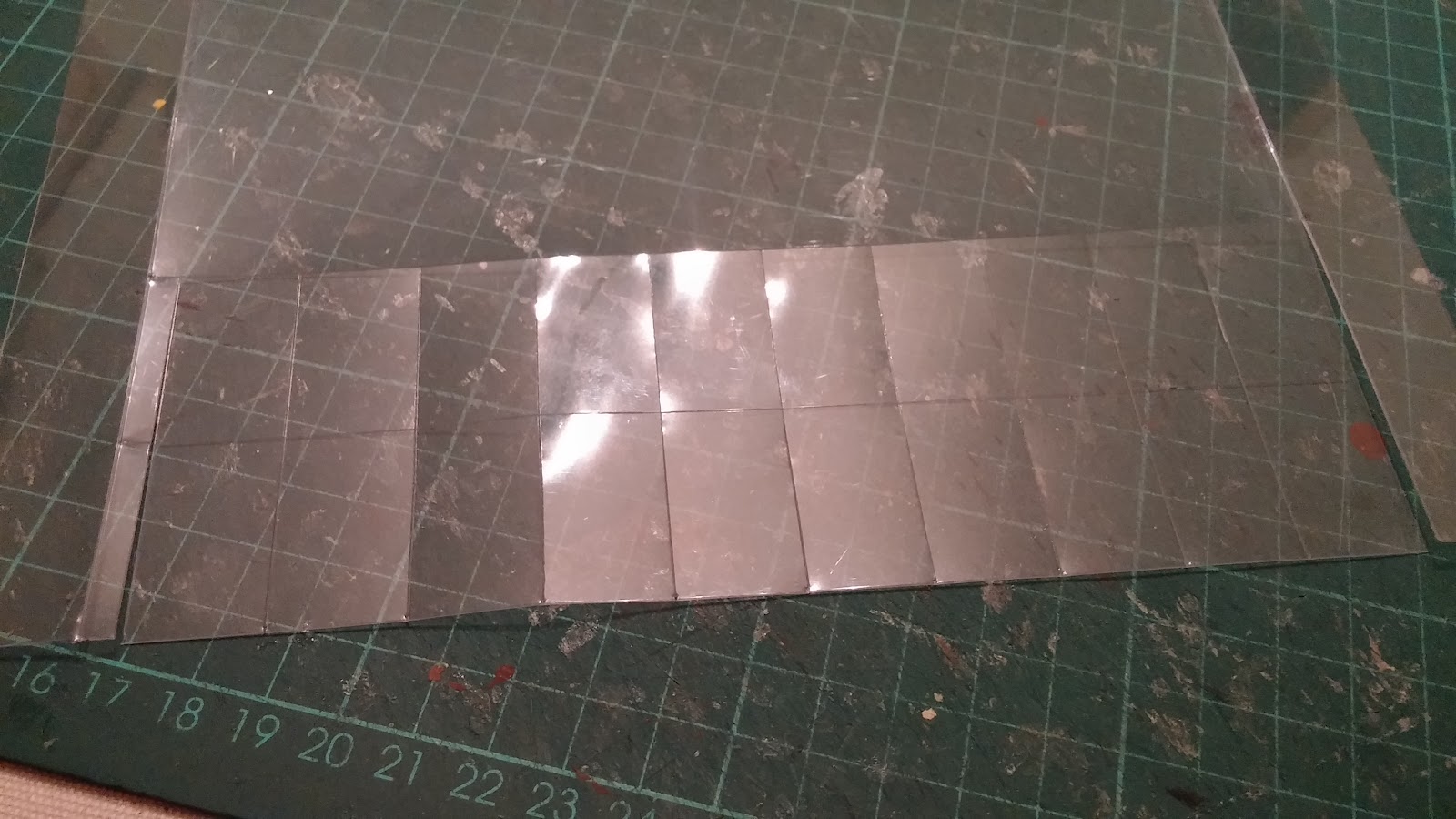 Now, I can't do the logical thing, which is to insert the perspex sheet between the wall and the window frame. It' be the simple thing to do. But it would be wrong. You can't have a reflective glass surface in front of the window frames. This of course means it will have to go on the inside of the building. Hmmm... Anyway, here's a photo of my perspex for the windows. Now, you can buy this stuff from all good art and hobby stores. But I didn't. You can clearly see it was rescued from some packaging from a Christmas gift. No point in throwing money away now, is there?